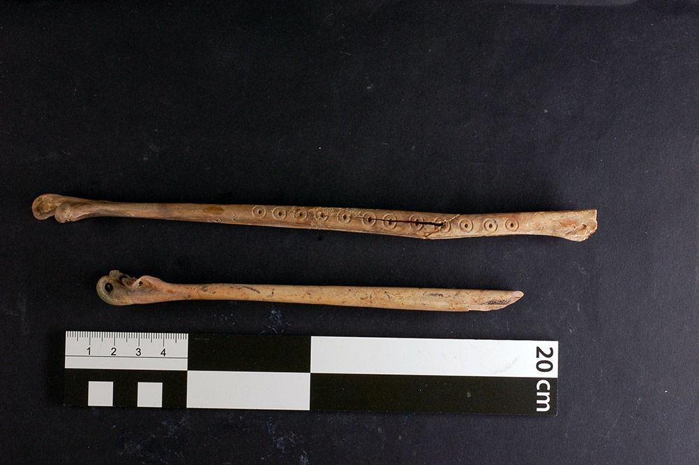 Even though it has only recently returned to Austria as a breeding bird, the common crane (Grus grus) belongs to the better documented avian species in the regional archaeological record, from the Neolithic up to the Late Medieval. Here, we present two worked tarsometatarsi of crane from Roman period contexts, which have recently become known to us. Cranes are large, long-legged birds – this becomes apparent in dimensions and proportions of the bones of their appendicular skeletons as well.